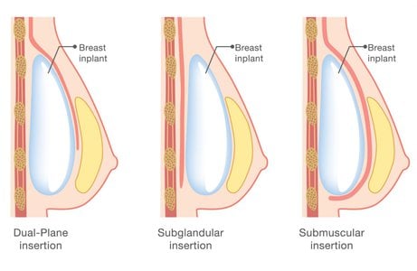 During the preoperative consultation, the surgeon will discuss the types of breast implant available, and together the patient and the surgeon will decide which is the most suitable option. During the procedure, the surgeon will then insert this implant into the breast. They can place the implant on top of the chest muscle (pectoralis major), under the chest muscle or as a combination of both.